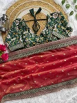 Blouse - fully stiched beautiful embroidery sequence and coding work full body and sleeves with side zip. (size: (38-46) --- Saree features bright and traditional look, light weight, easy to drape.
