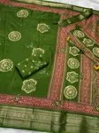 Pattern - Mirror work with thread Embroidered butta in full saree, Ajrakh Printed saree with zari jacquard border, Tussles in pallu