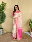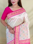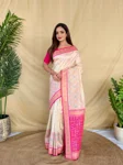 - Ivory Soft Silk Saree with Multithread Zari Contrast Border & Rich Zari Contrast Pallu