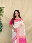 - Elegant ivory soft silk saree featuring delicate multicolour woven buttas across the body. Enhanced with a multithread zari contrast border and a rich zari contrast pallu, giving the saree a festive and luxurious appeal. Soft, lightweight, and graceful—perfect for weddings, festivals, and traditional gatherings.